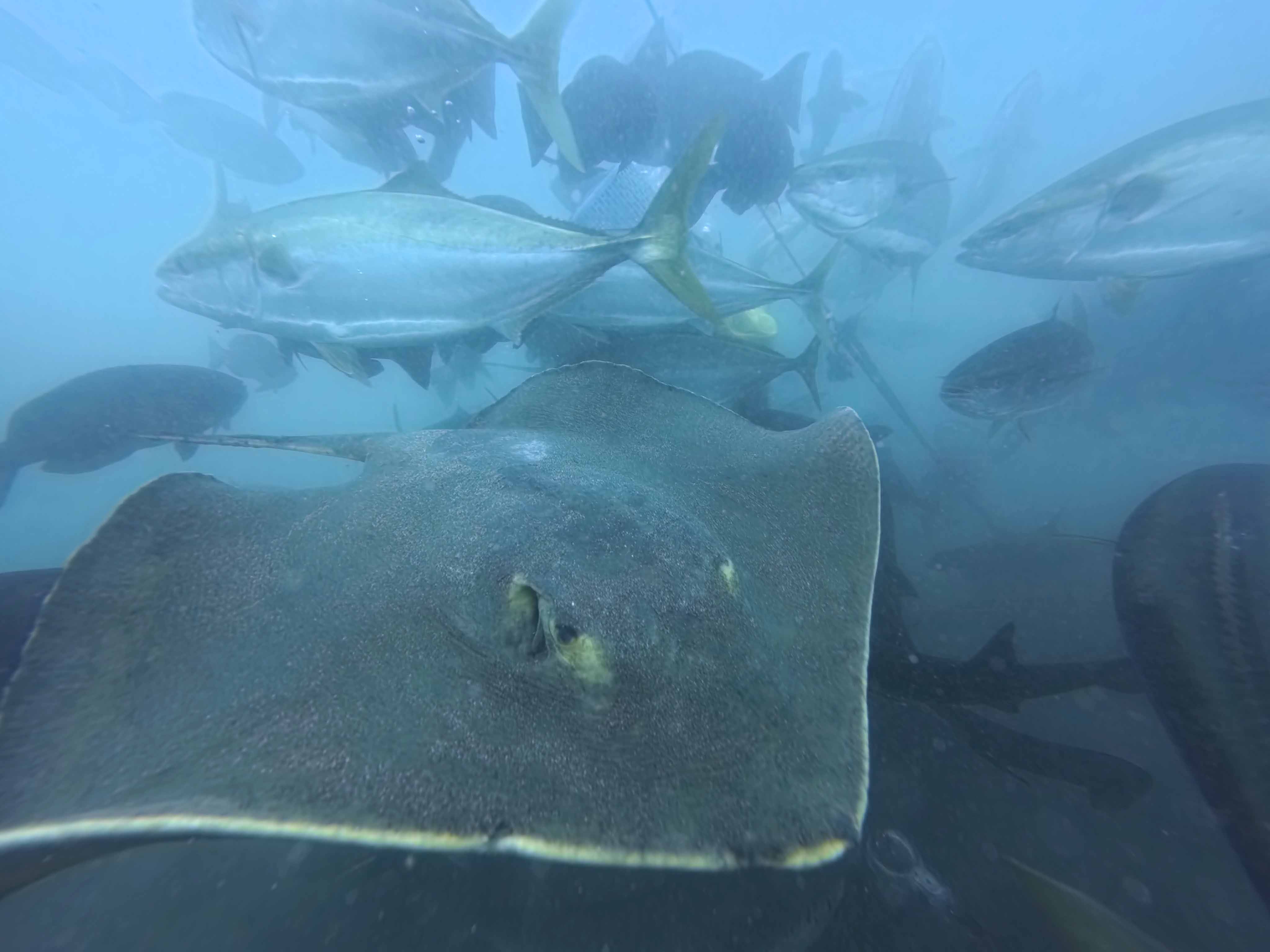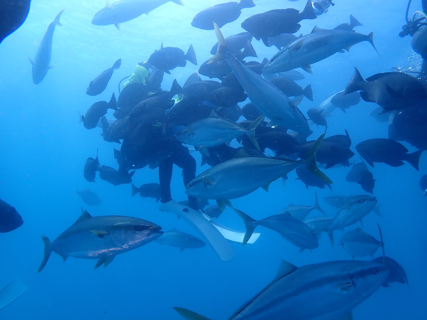 潜降するとメジナやカンパチ、ワラサ達で群れ群れ~!
