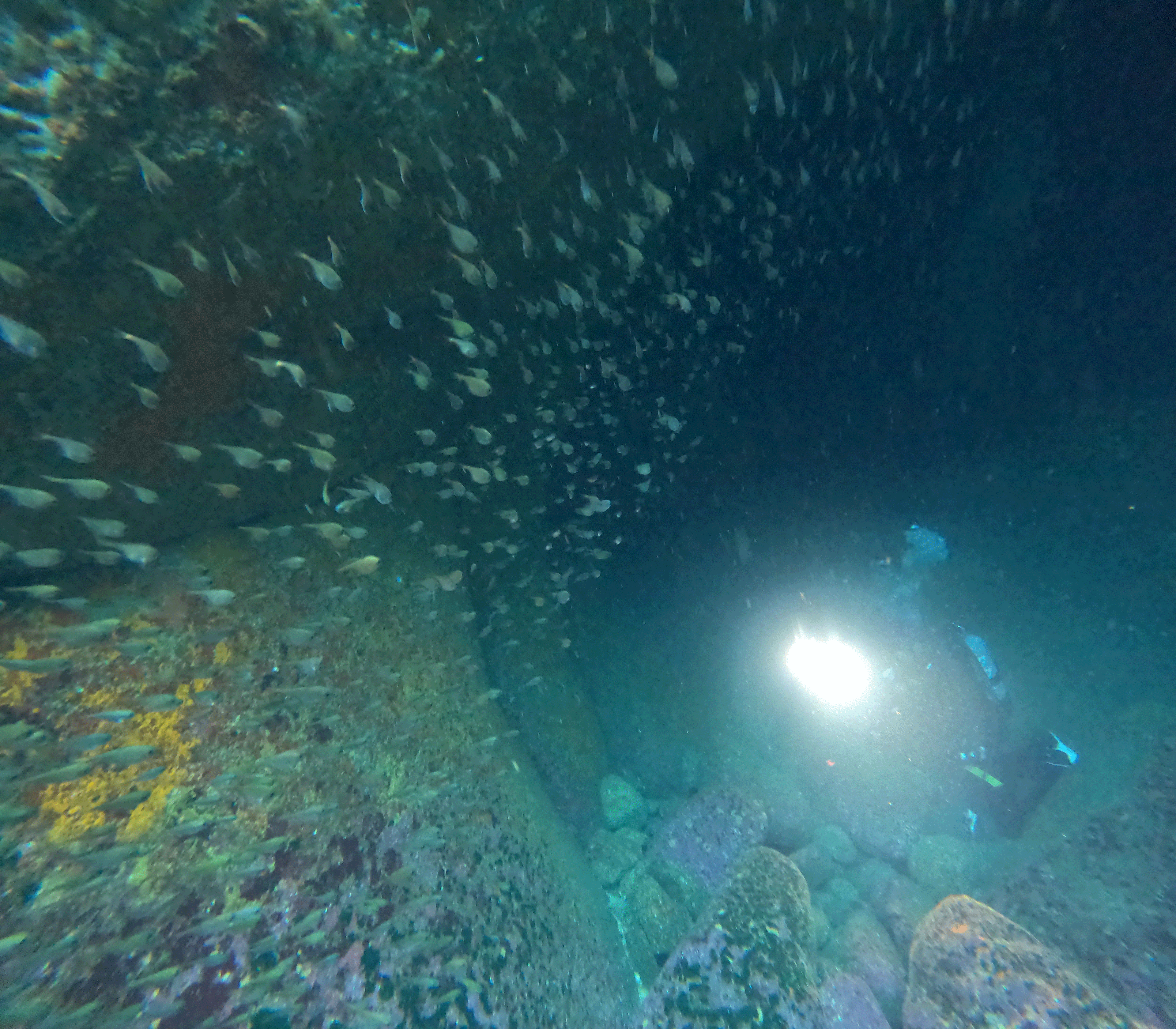 1ダイブは端っこまで泳いで黄金崎ホールへ!!