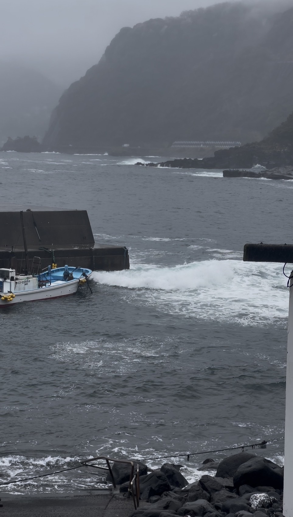 赤沢へ到着すると海は荒れ荒れ…(;´∀`)
