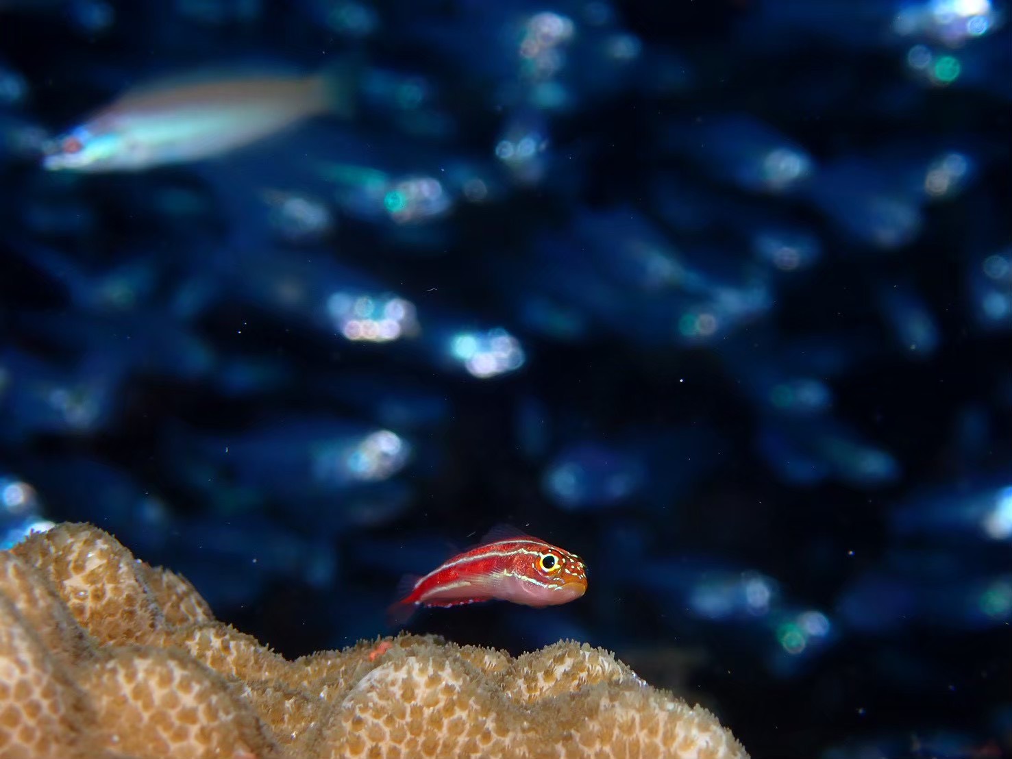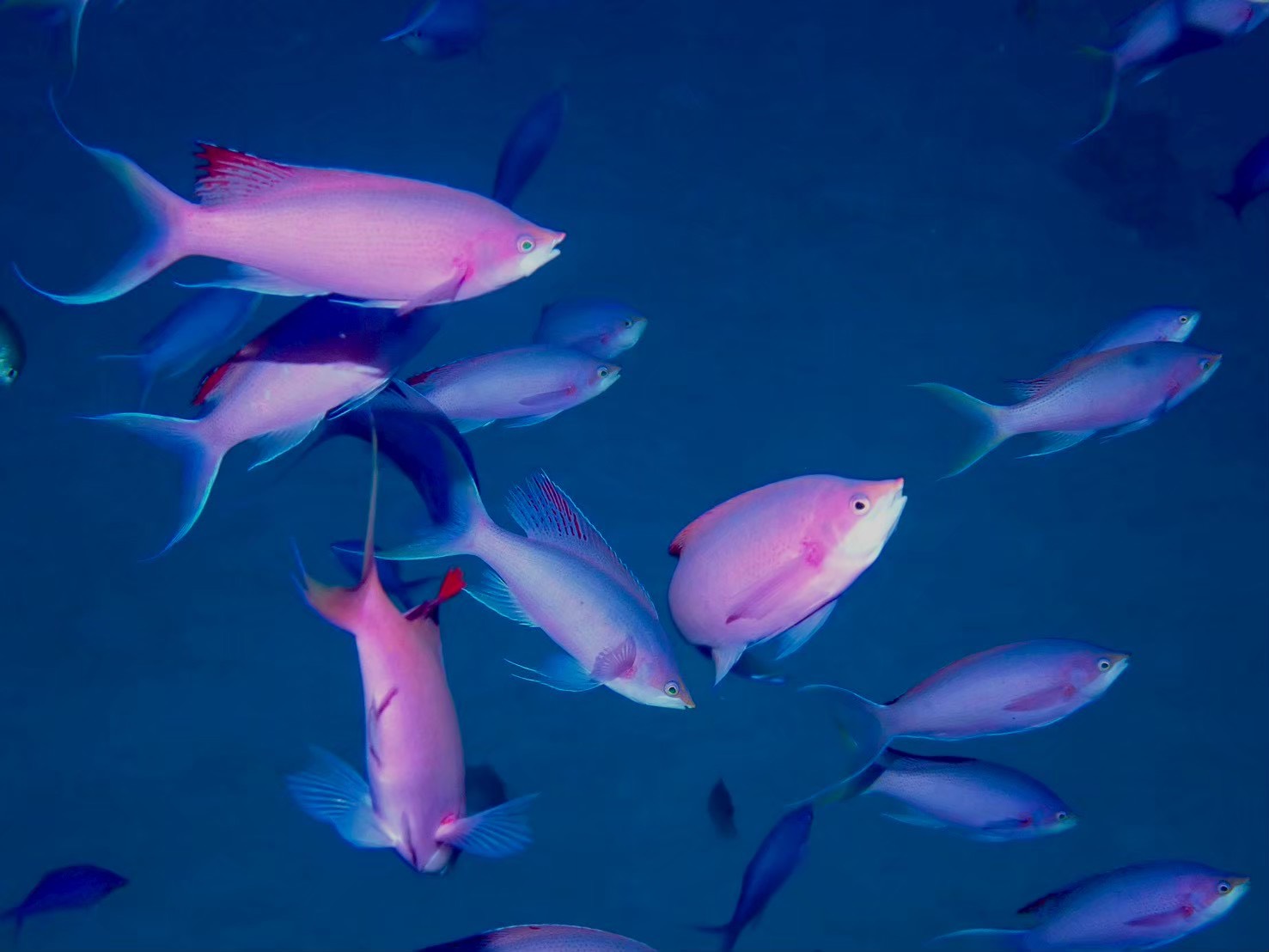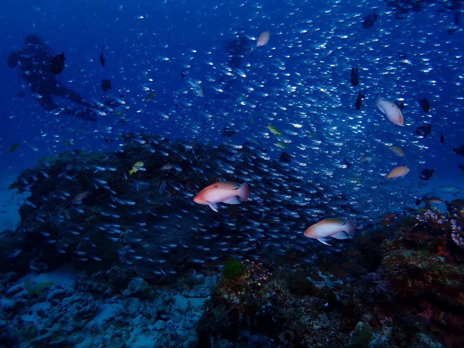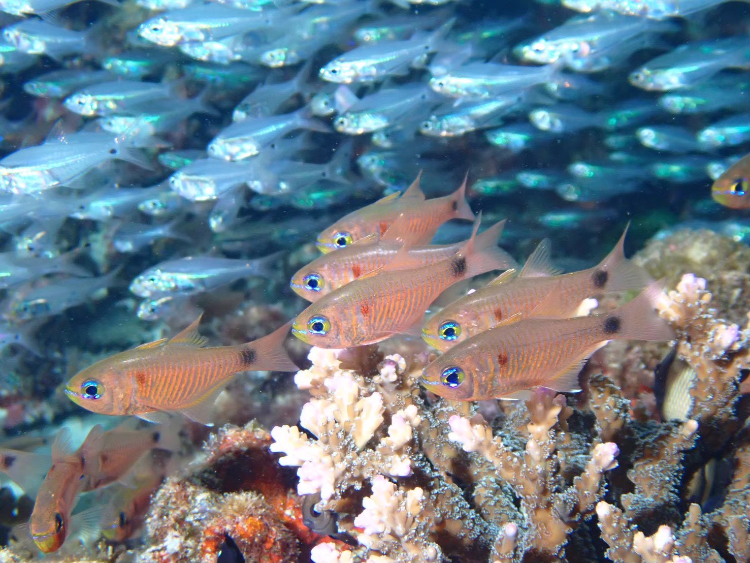 スカシテンジクダイ、キンセンイシモチ、キンギョハナダイ、ケラマハナダイ、大きめミツボシクロスズメダイ等