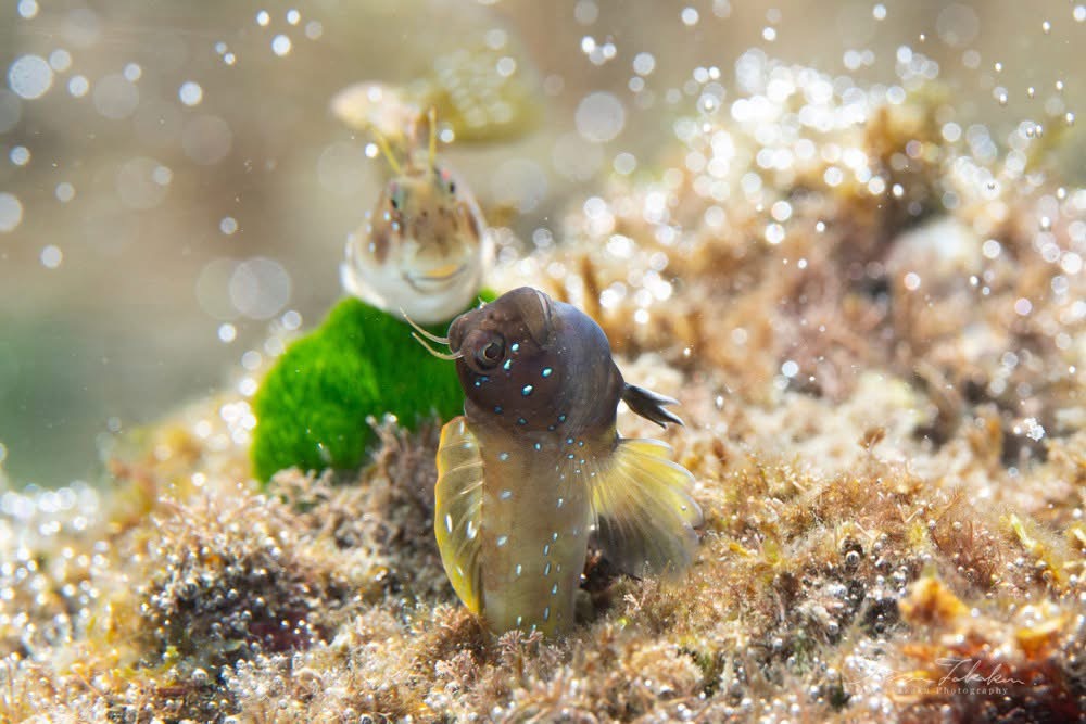 6−8月は繁殖期のロウソクギンポが愛おしいほど健気にピョコピョコと求愛をしています。